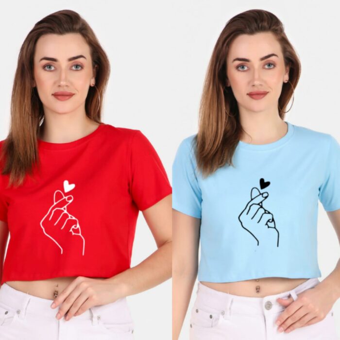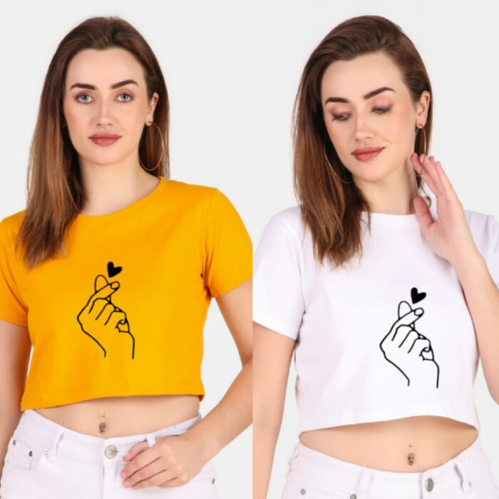 Trendy 190 GSM BIO Washed and Enzyme Washed 100% COTTON COMBO OF TWO PRINTED CROP TOPS from Trendy Rabbit